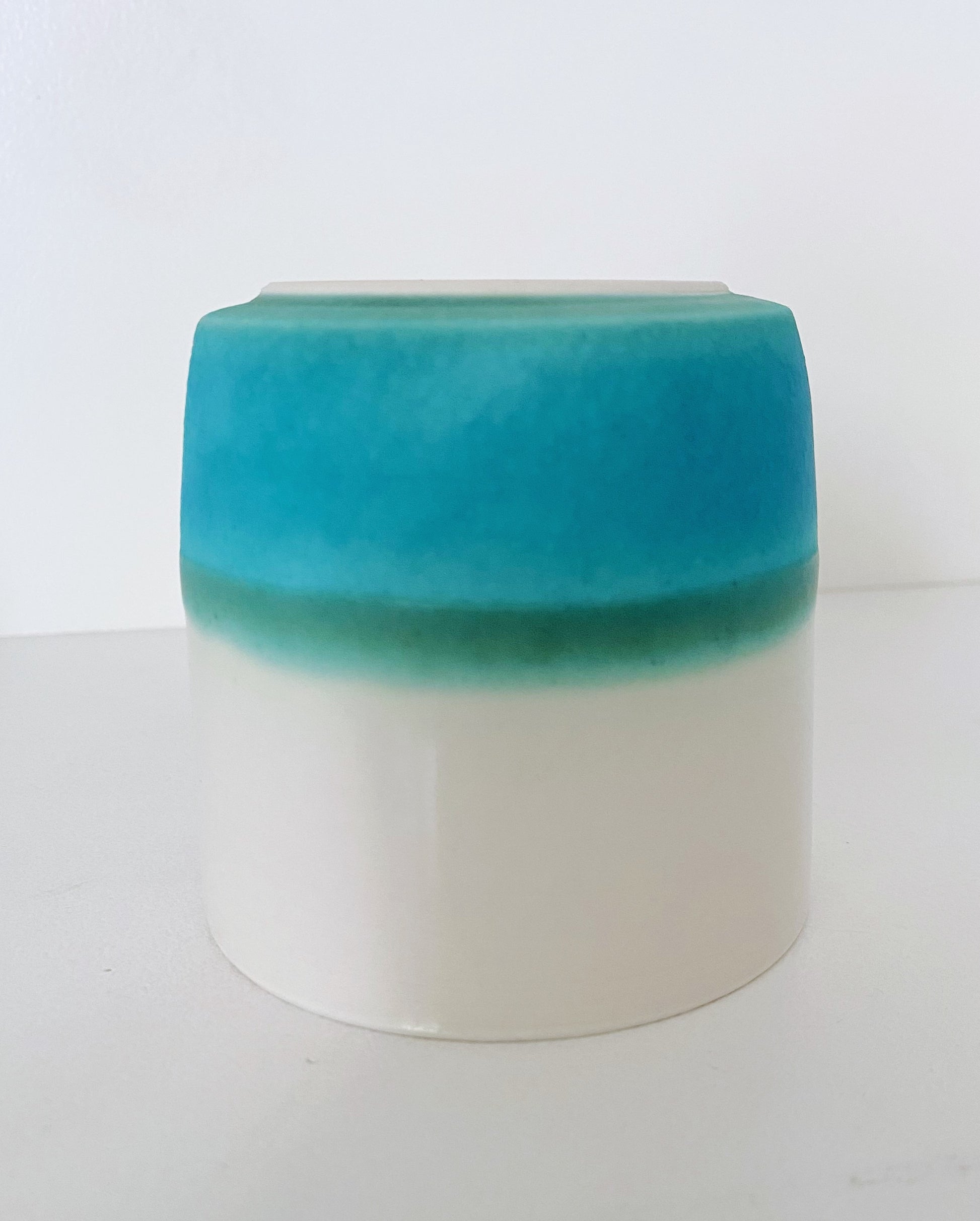 Made from elegant porcelain, these beakers are thrown on the wheel and then glazed with a matt turquoise and transparent glaze combination. These little beakers are perfect for an espresso coffee, splash of wine or small dessert.