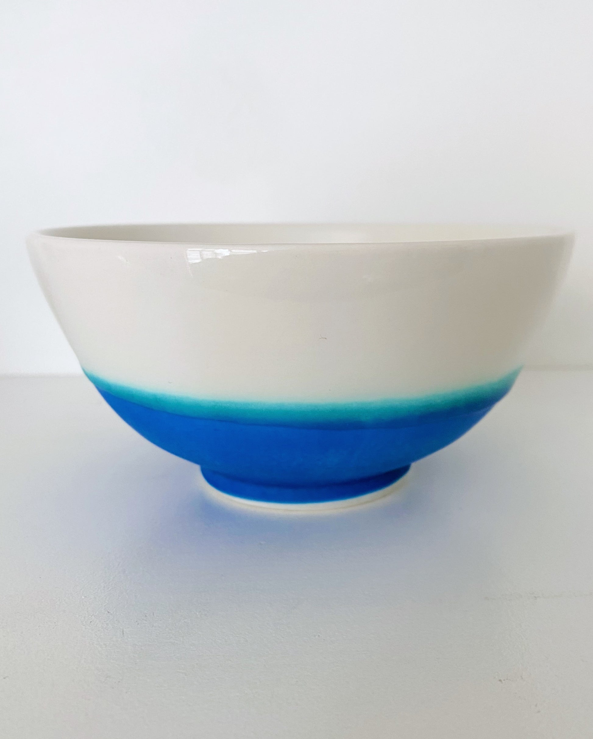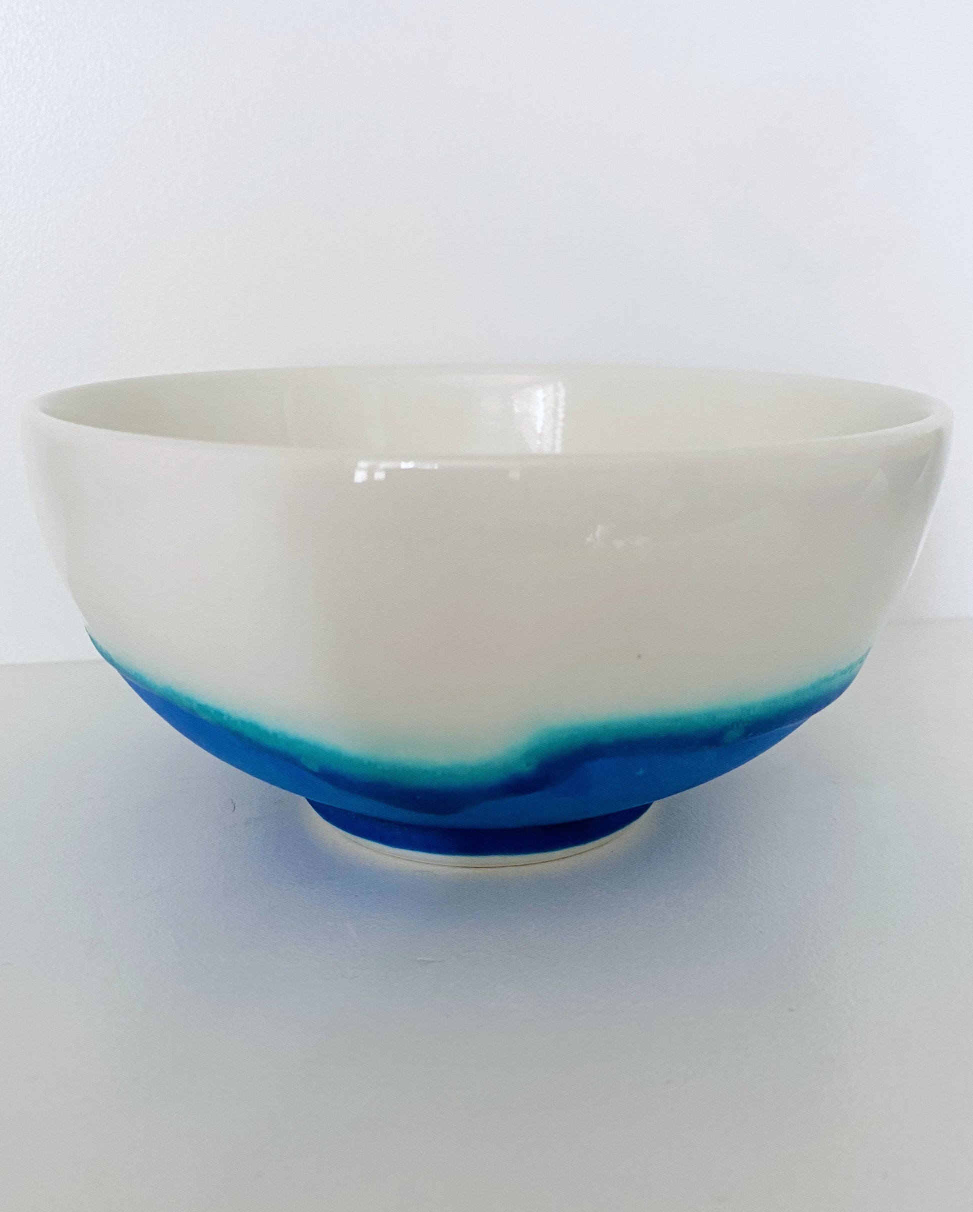 Wheel thrown porcelain bowl with a matt turquoise and transparent glaze combination. These bowls are perfect for cereal, soup or dessert.